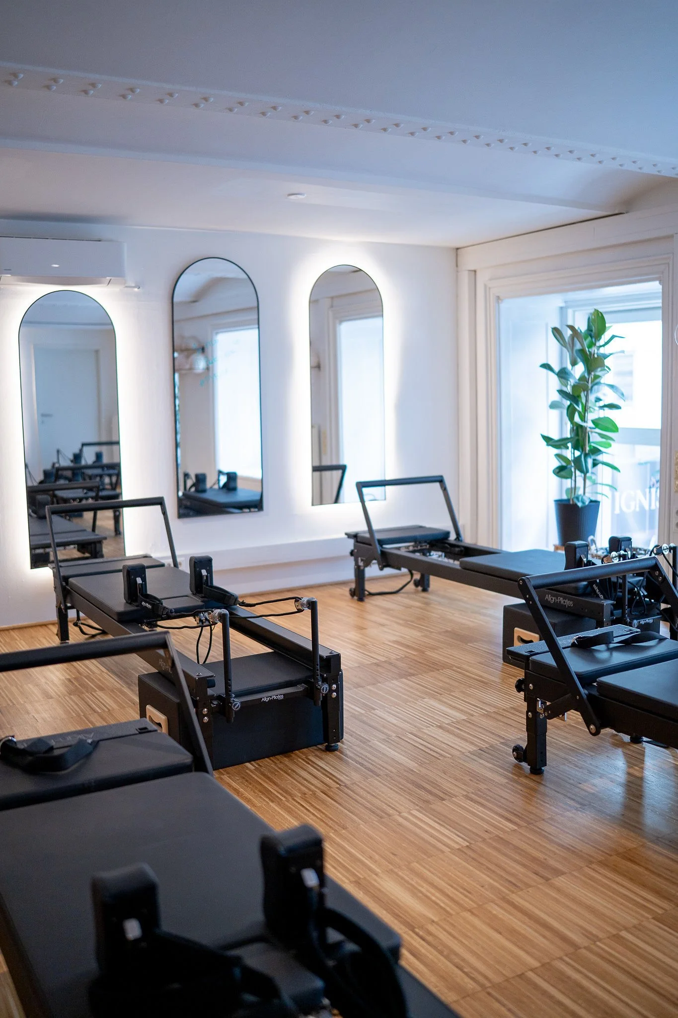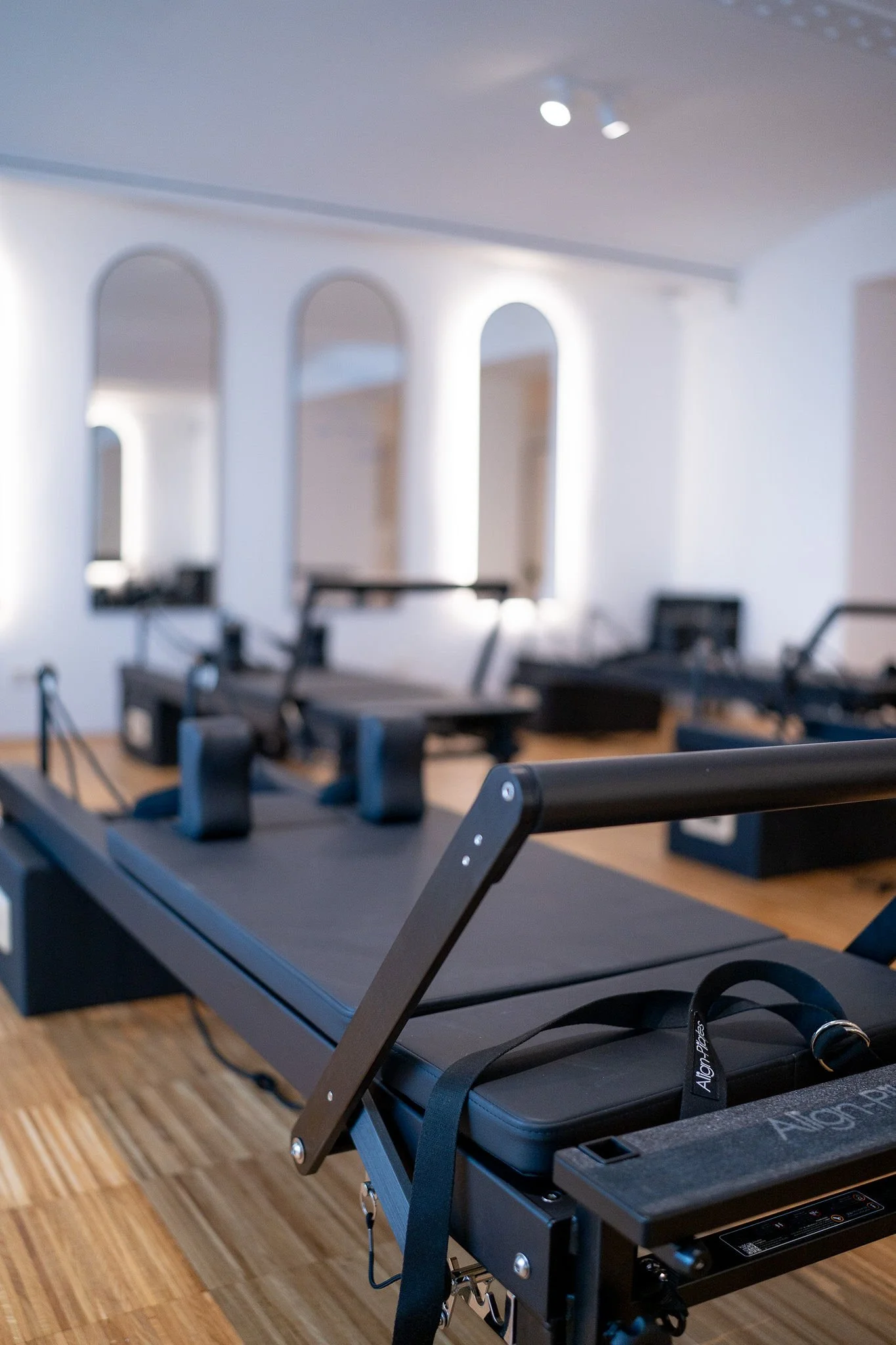 Individuelles Coaching: Bis 8 Teilnehmer:innen profitierst du von persönlicher Betreuung. Ab 9 Personen finden parallele Reformer- und Mattenklassen statt – immer auf höchstem PY Studio Niveau.